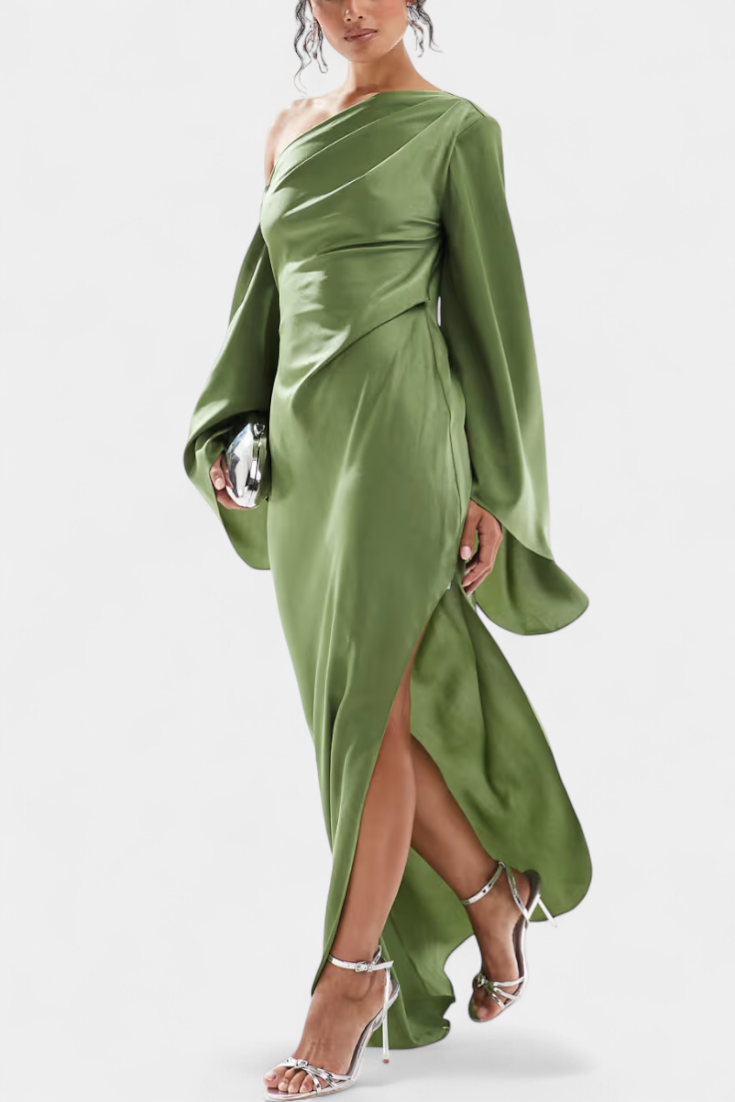 Franka Asimetrična Maxi Haljina s Jednim Rame i Oblikovanom Strukom
