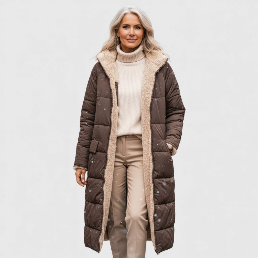 • Stil – Ženska silueta i dug, elegantan kroj koji ističe sofisticiranost, savršeno balansirajući toplinu i glamur.