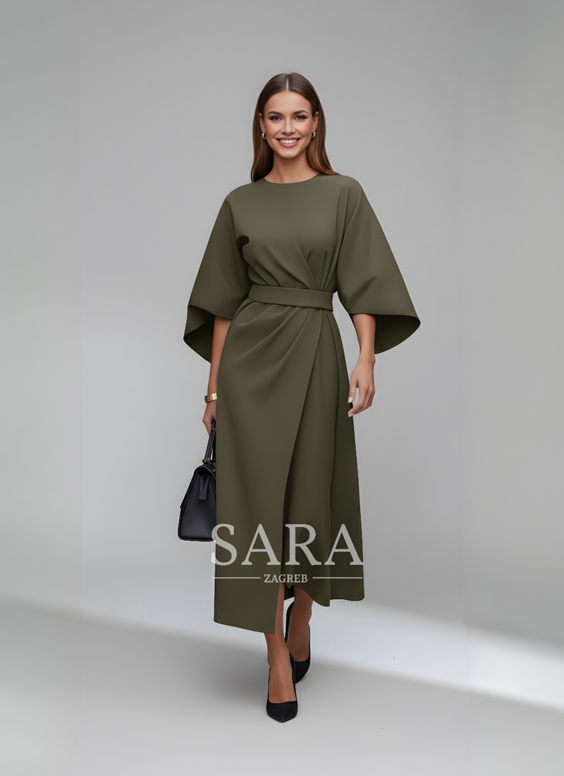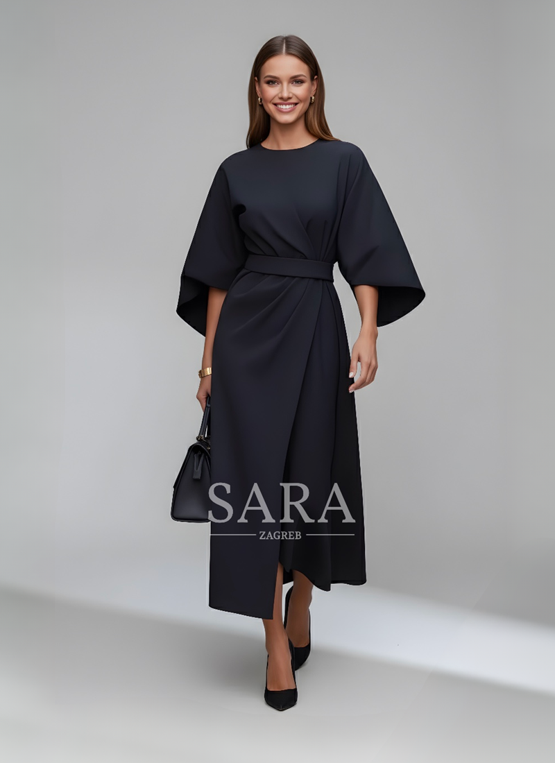 Haljina Celestine spaja klasičnu eleganciju i moderni kroj, te je idealan suputnik za stilizirane pojave. Elegantne lantern rukave i pojas u struku stvaraju ženstvenu siluetu i dašak rafiniranosti – savršena za posebne prilike ili elegantne svakodnevne lookove.