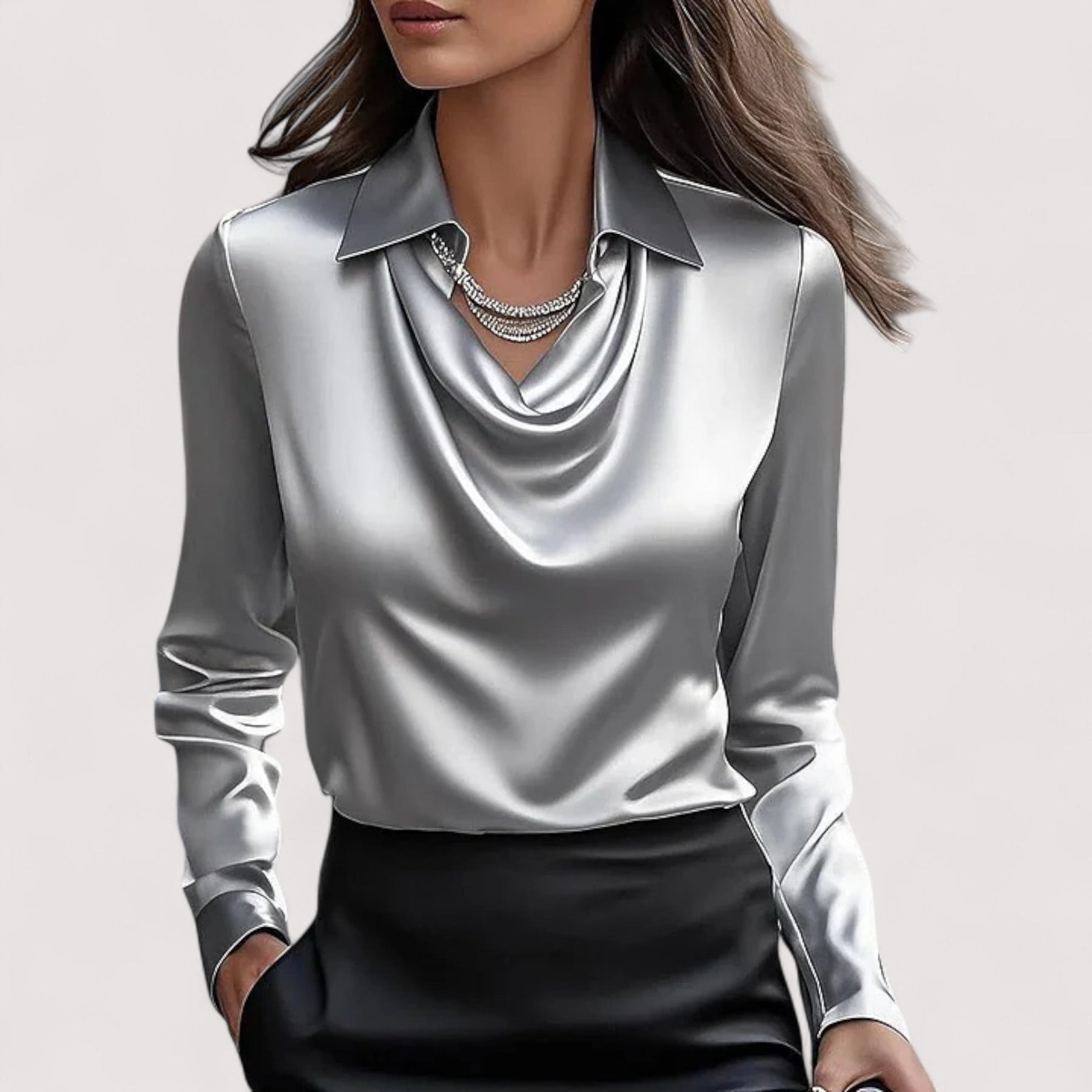 Charlotte – Elegantna Satenska Bluza s V-Izrezom