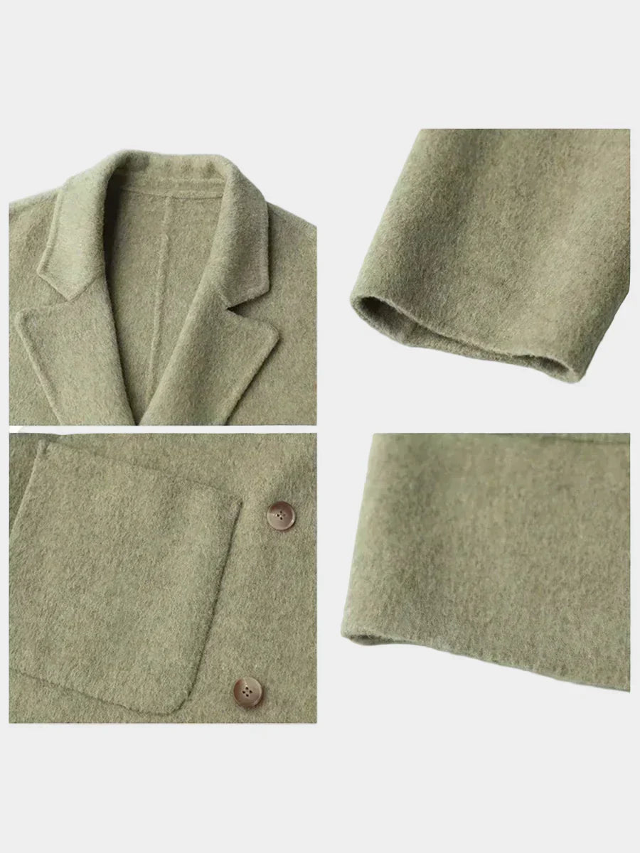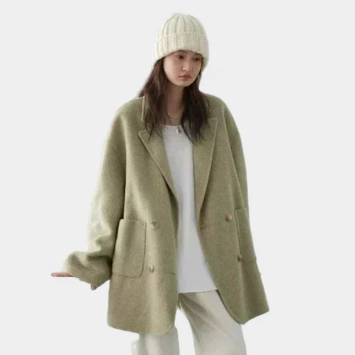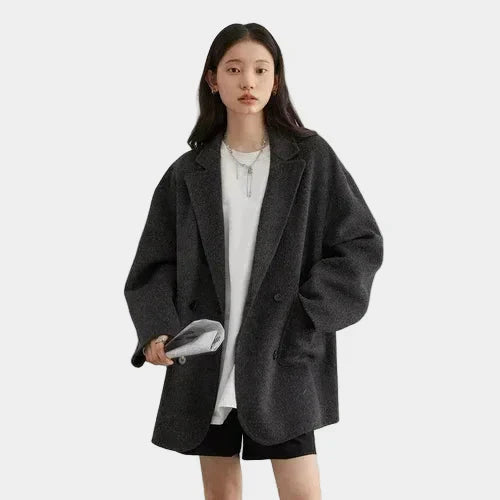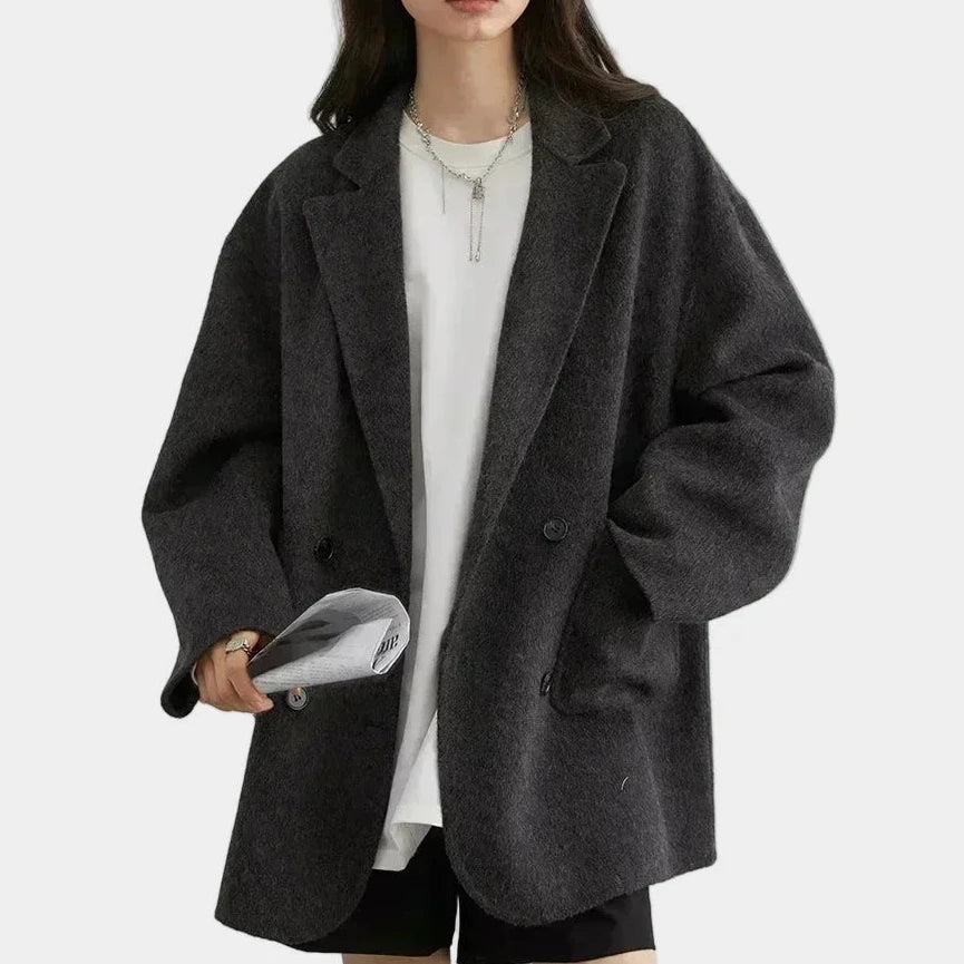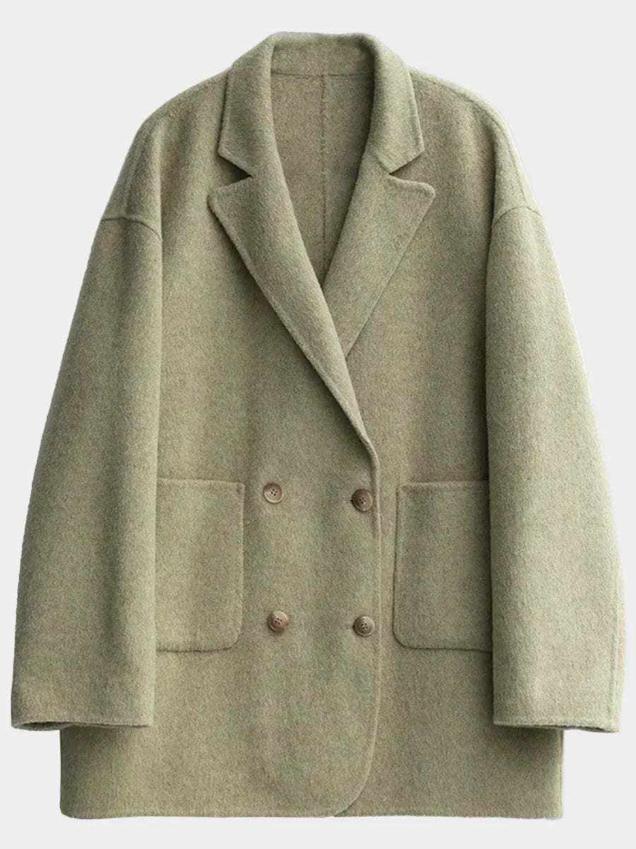 Elegantan dvoslojni vuneni kaput s dvostrukim kopčanjem i udobnim krojem za sofisticiran i opušten stil