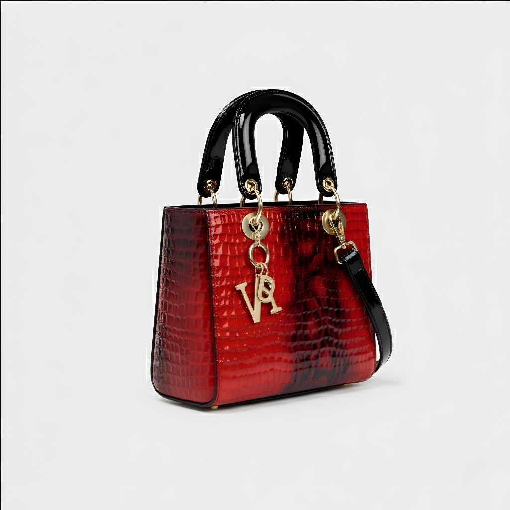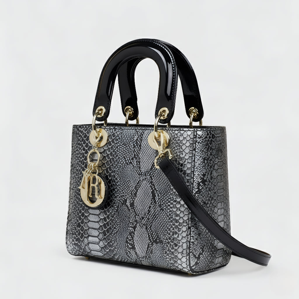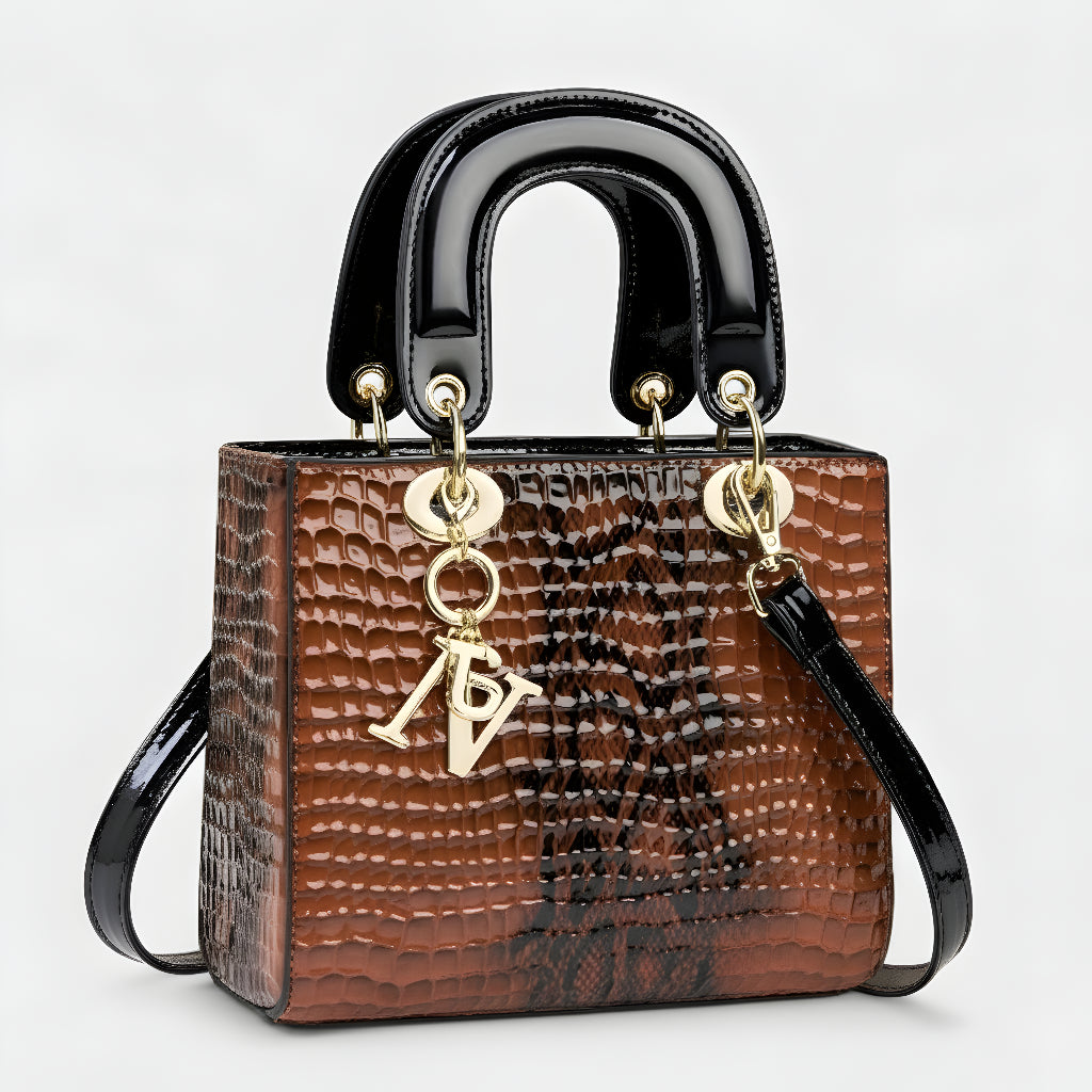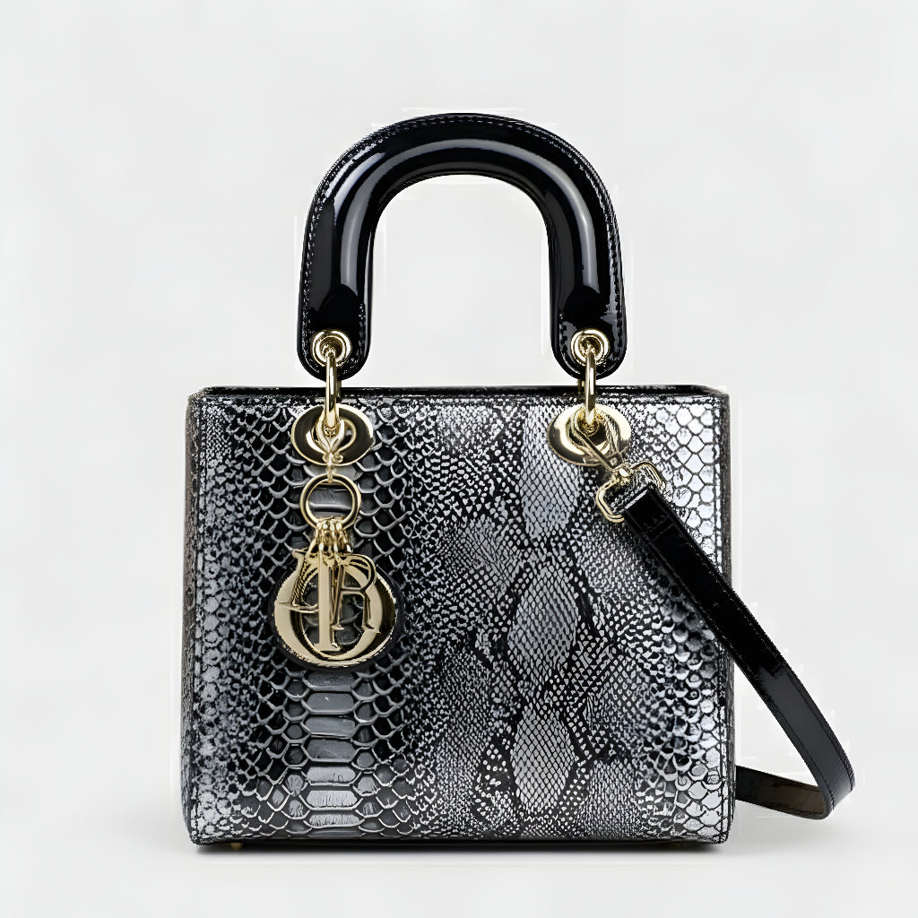 Sa sofisticiranim završetkom u životinjskoj teksturi i metalnim dijelovima visokog sjaja, ova torba je definicija profinjenosti. Strukturirana, s dvostrukim ručkama i dugom uklonjivom trakom, nudi svestranost koja odgovara od formalnih događaja do ležernih trenutaka sa stilom. Aksesor koji trenutno podiže svaku kombinaciju, donoseći šarm i autoritet.