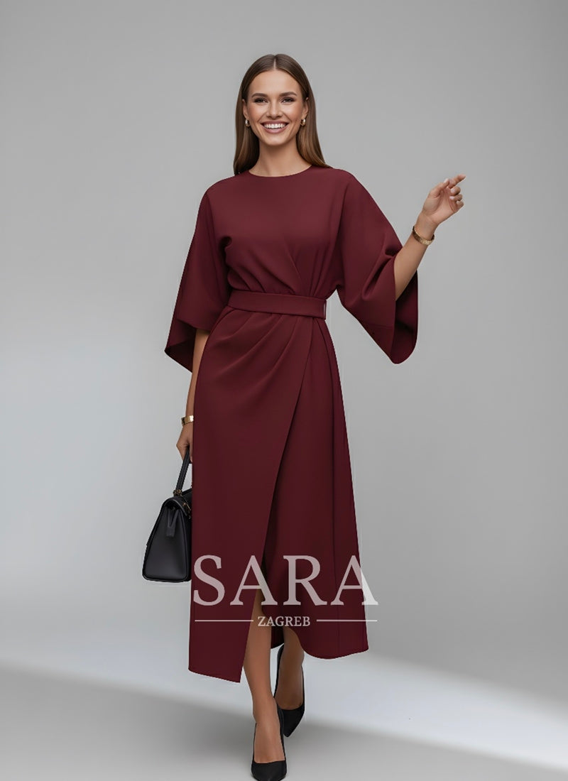 Haljina Celestine spaja klasičnu eleganciju i moderni kroj, te je idealan suputnik za stilizirane pojave. Elegantne lantern rukave i pojas u struku stvaraju ženstvenu siluetu i dašak rafiniranosti – savršena za posebne prilike ili elegantne svakodnevne lookove.